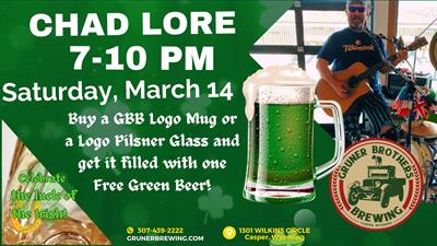 Celebrate St. Patrick's Day the right way with ice-cold GBB GREEN BEER flowing all day and live music from Chad Lore bringing the party vibes.